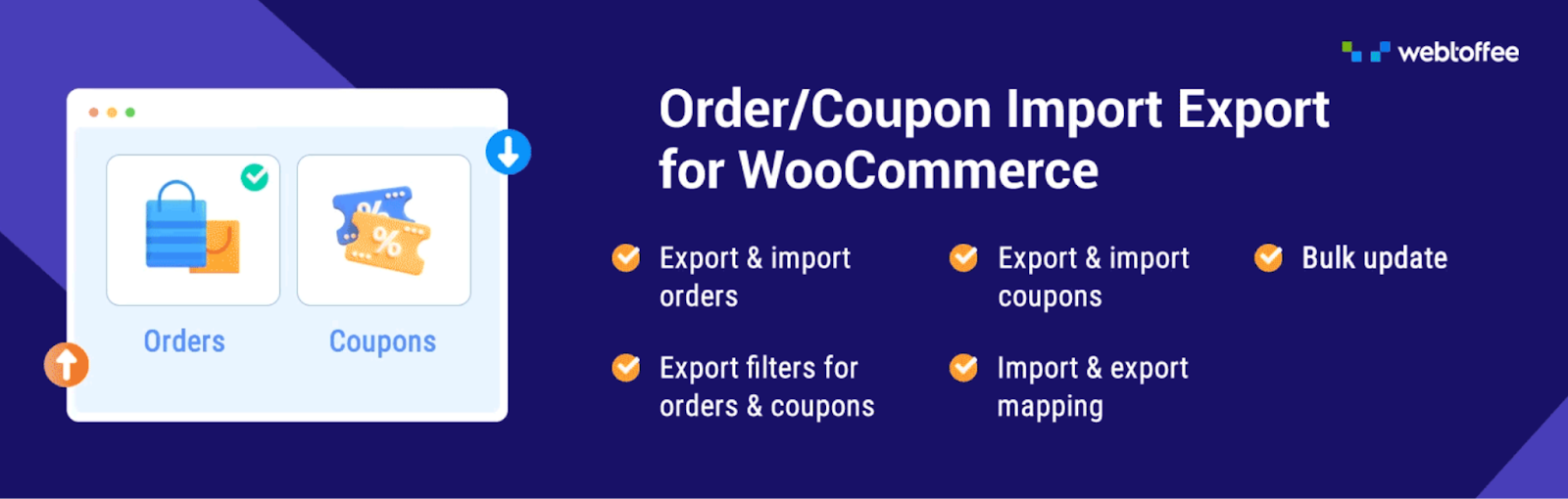 The plugin allows you to import and export WooCommerce orders, coupons, and subscription data using commonly used file formats such as CSV, XML, TSV, and Excel. Store owners can export specific sets of orders using filters, which is useful when preparing reports, sharing data with accounting tools, or migrating orders between stores. The plugin also supports both quick exports and advanced exports, enabling store owners to decide exactly what order data should be included.
